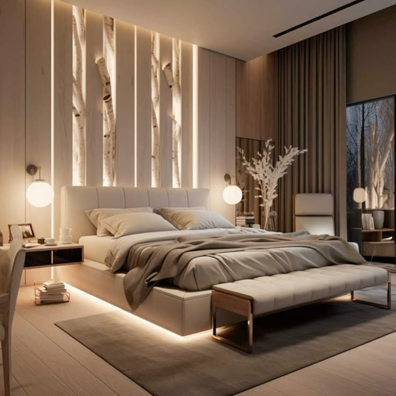 Рабочая формула: «Мягкие тени + теплая температура света + несколько сценариев = красивый и стильный интерьер спальни».